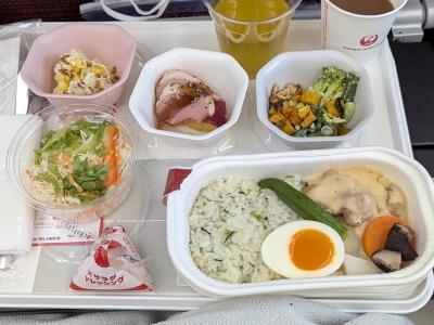 私が、映画を見たり、寝たりしている間に、妻がCAさんといろいろお話していた。 13時間の空の旅なので、配られる食事やスナックの他に、ギャレーに飲み物やスナックが置いてあった。 ボスニアに行った時に、豚が使われていないハラール機内食だったけど、最近は、ハラールだけでなく、ビーガン対応だったり、低カロリー対応だったり、事前に予約しておくと、いろいろ対応してくれるらしい。 間違えちゃいけないから、出発前にお客さんに確認して、座席にシールを貼って、配膳の時には普通の食事の前に配るそうです。でも、ビジネスクラスのお客さんの座席にはシールを貼れないので、メモして覚えておくしかないんだって。 コレは夜食?朝食?左上からコーンのマヨサラダ。鴨の燻製。カボチャのサラダ。チキンのホワイトソース。生野菜。 副菜は同じで、主催がデミハンバーグ。2人で旅行すると、異なる機内食を食べられるから、楽しい。 おいしかった苺アイスは、JAL機内限定でした。 |