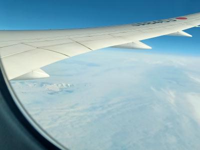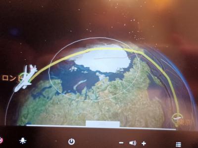 | ロンドン直行便だけど、ロシア上空を飛べないので、北極海上空を飛ぶ。 アラスカの上から、北極海、グリーンランドを通り、北からイギリス上空へ。 アンカレッジで給油のための着陸をしないですむようになっていても、やっぱり長距離だなぁ。 東京からの直行便だと、一番長時間の便かも知れないって。 |