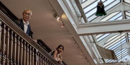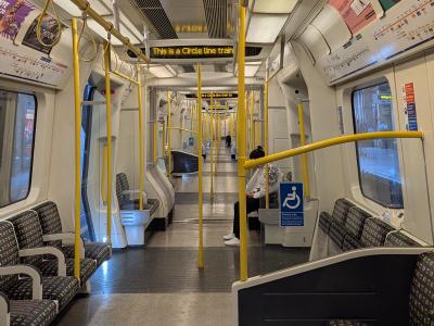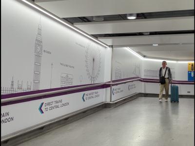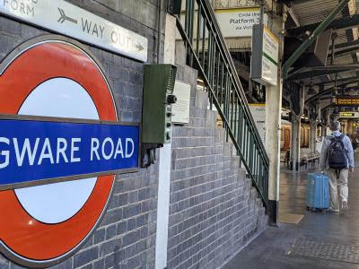 ヒースロー空港からは、高額なヒースローエキスプレスには乗らず、地下鉄のエリザベスラインで、まずは、パディントン駅へ。 社会の路線図を見ている姿を、撮られてしまいました。 ロンドンのエスカレーターは、関西式で、右に立ち、左側を空けていました。 パディントン駅で、Circle lineに乗り換え、ホテルの最寄りのエッジウェアロード駅へ。 |