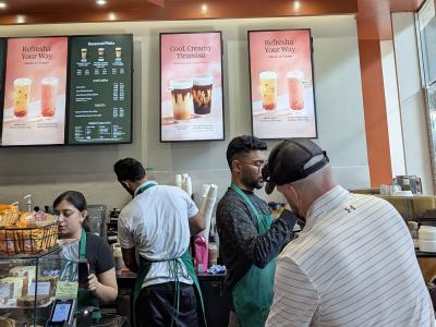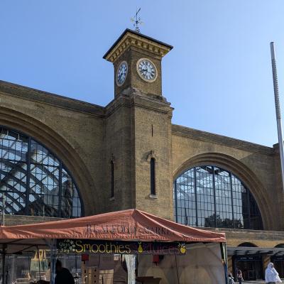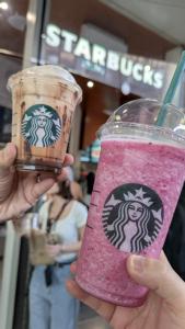 ロンドン初めてのスターバックスは、キングス・クロス駅のスタンド店。忙しい店舗で、何もかもがスピーディーなので、注文するのも緊張しました。 イギリス限定の季節商品「ティラミス クリーム アイスラテ」と日本では販売されていない「フローズン マンゴー ドラゴンフルーツ スターバックス リフレッシャー」を飲みました。 キングス・クロス駅は、いろいろな映画の撮影場所になっていて、それを紹介するプレートもありました。 |
