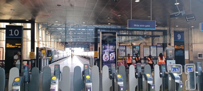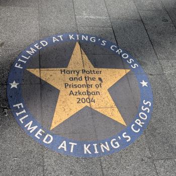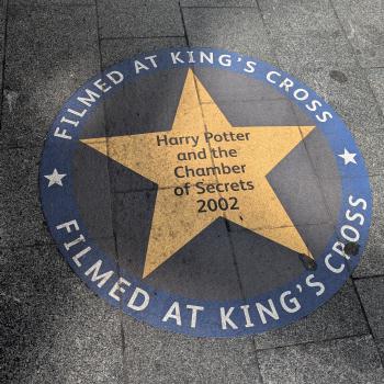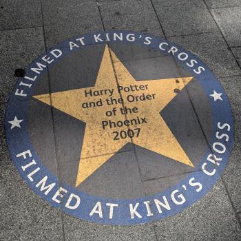 映画では9番線と10番線の間の壁を通り抜け、9と3/4番線に入りましたが、現在のキングス・クロス駅では9番線と10番線の間に線路があり、別のホームになってしまったため、映画のような壁は存在しません。 |