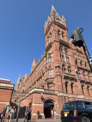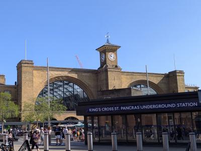 キングス・クロス駅に隣接しているセント・パンクラス駅もいい感じの建物でした。 鉄道の駅は、それぞれ別ですが、地下鉄の駅は、「キングス・クロス・セント・パンクラス」駅とセットになっています。 |